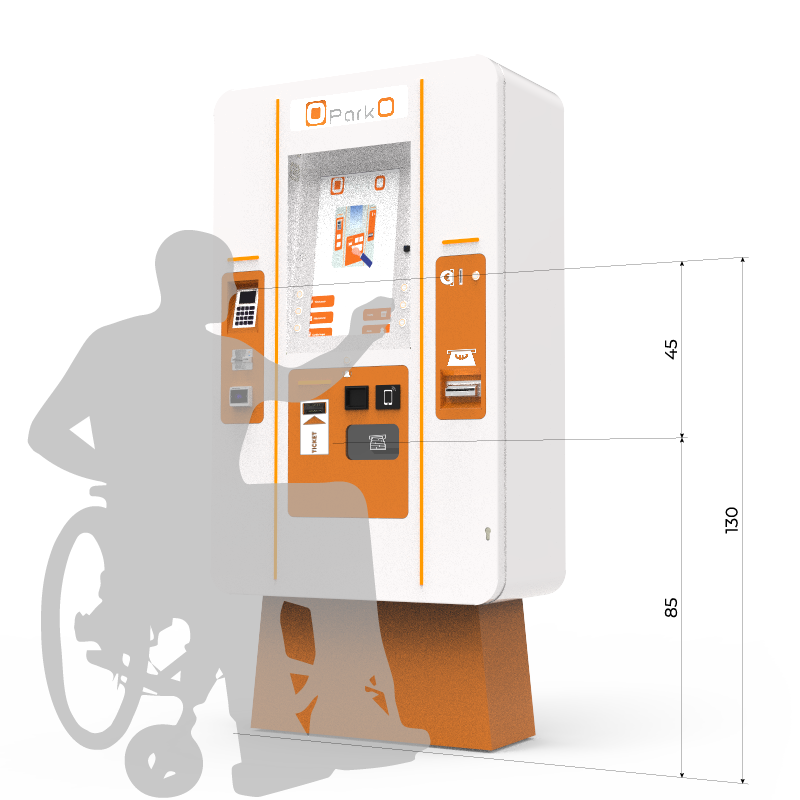 Un attento studio ergonomico degli utenti è alla base della progettazione della cassa automatica che, grazie all'innovativa disposizione dei componenti interni, riesce a compattare la differenza di altezza tra il punto di inserimento delle monete e il punto di ritiro del resto e della ricevuta. Questo rende la cassa utilizzabile comodamente da ogni utente, rispettando le normative in vigore in tema di accessibilità.